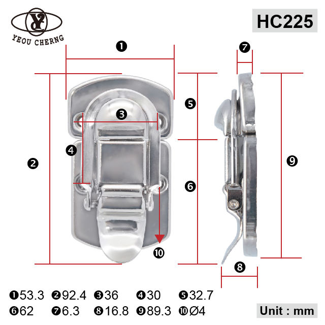 Accessoires de flight case sur mesure: mini serrures à moraillon en nickel chromé HC225. Léger, solide et écologique Personnalisez la sécurité