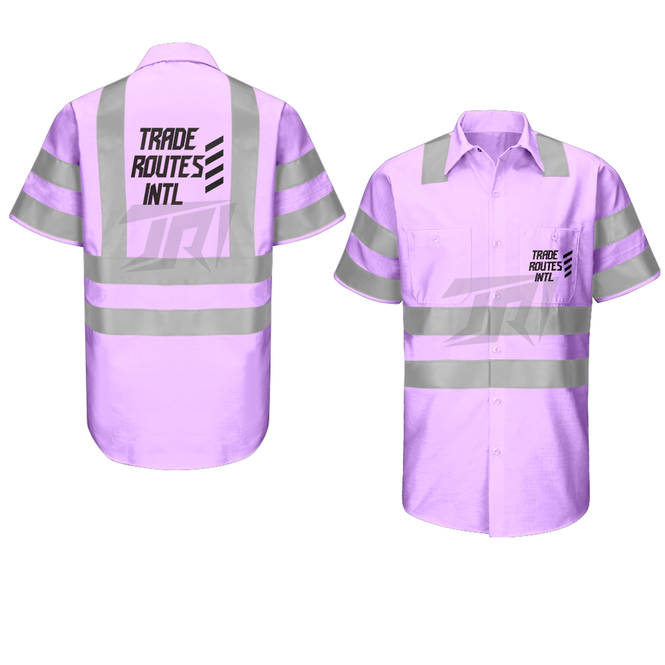 Ensemble de vêtements de travail en polyester haute visibilité sur mesure | Chemise à col rond avec boutons, imperméable, classe 1 ANSI | Qualité supérieure