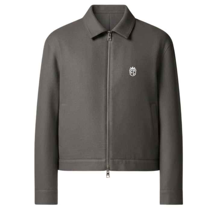 Veste en laine mélangée sur mesure pour homme en gris avec fermeture éclair, design élégant et tissu de haute qualité pour une mode moderne et un confort optimal