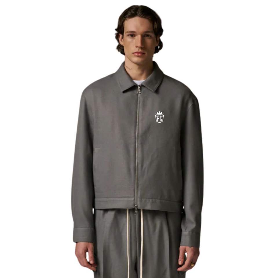 Veste en laine mélangée sur mesure pour homme en gris avec fermeture éclair, design élégant et tissu de haute qualité pour une mode moderne et un confort optimal