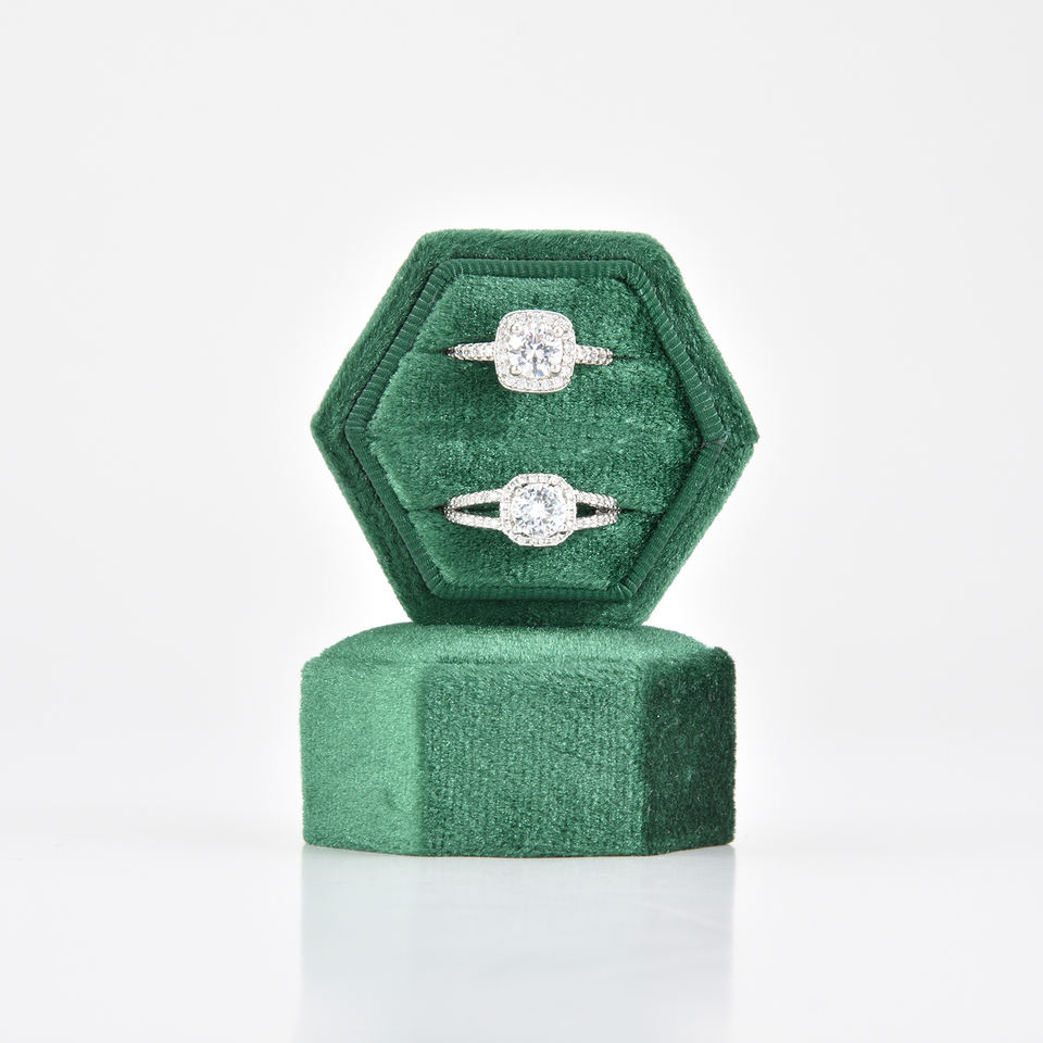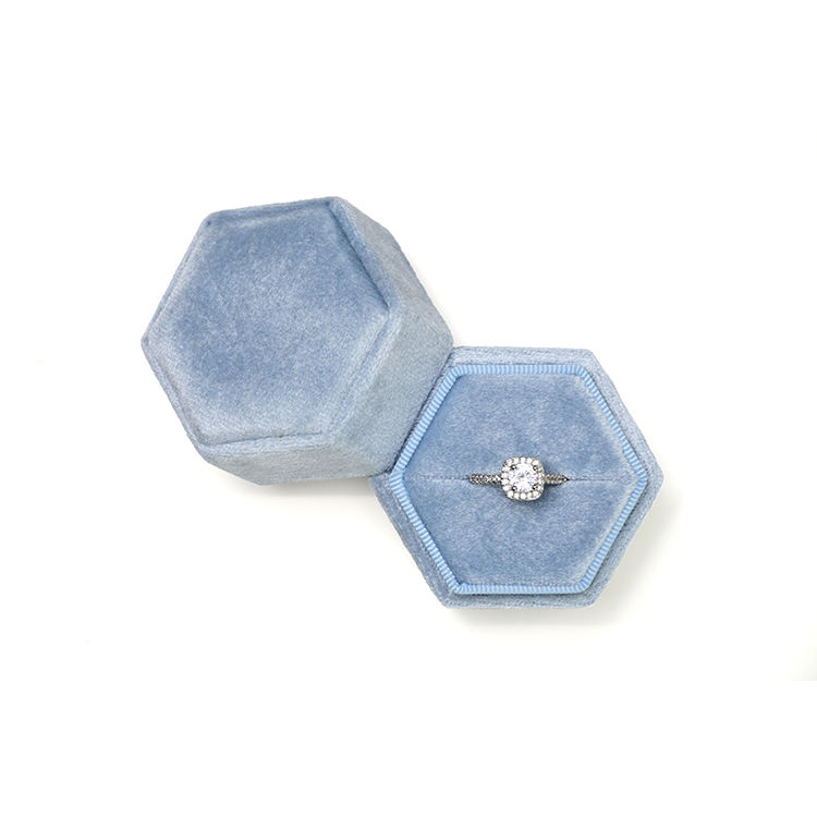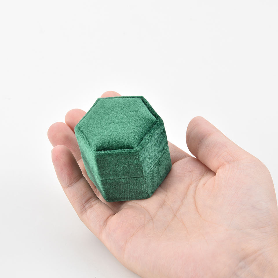Boîte à bagues en velours de haute qualité Taimy, 2 emplacements, hexagonale, verte, boîte à bagues de fiançailles, vente en gros personnalisée, mini boîte à bijoux