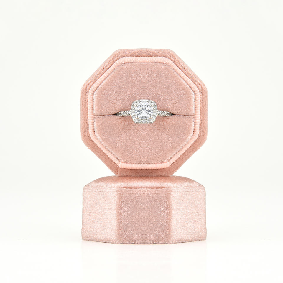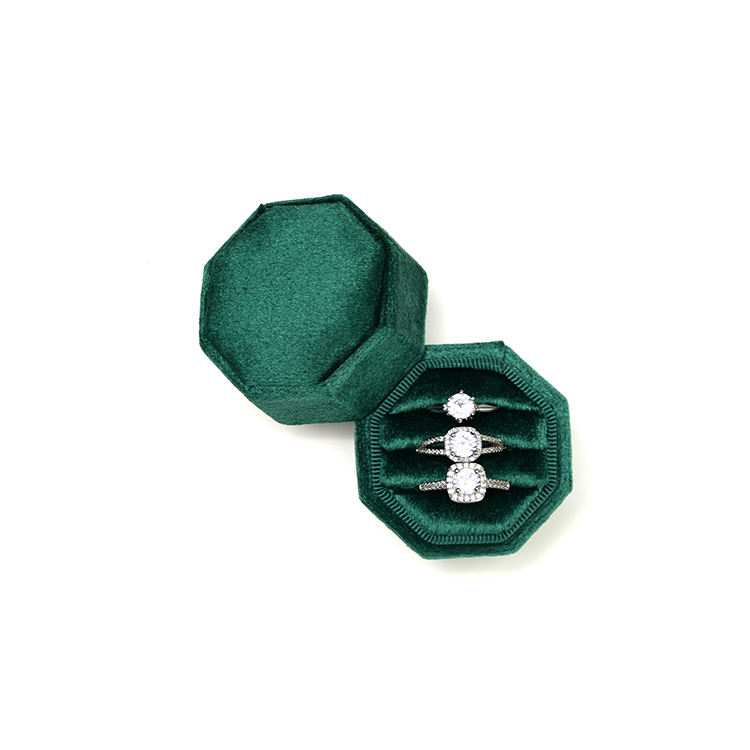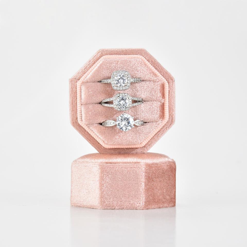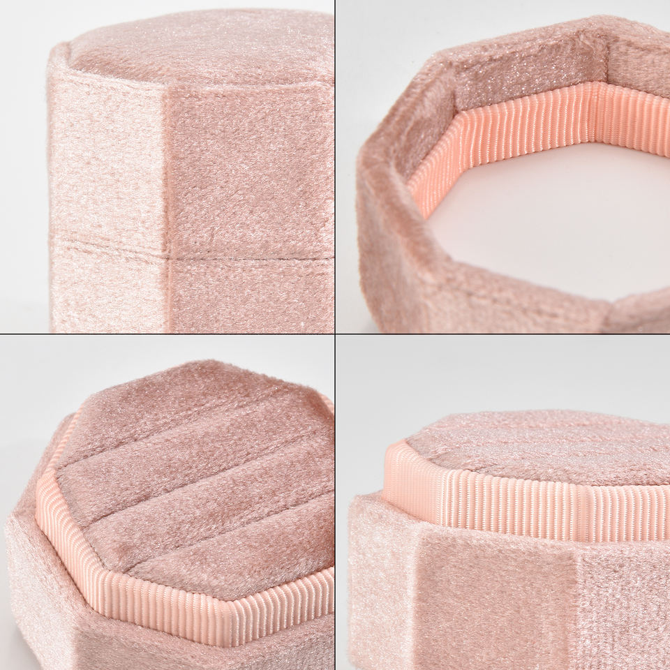 Taimy Boîte à bagues en velours à 3 emplacements de haute qualité Boîte à bagues de fiançailles octogonale rose Boîte à bijoux mini octogonale avec logo personnalisé en gros