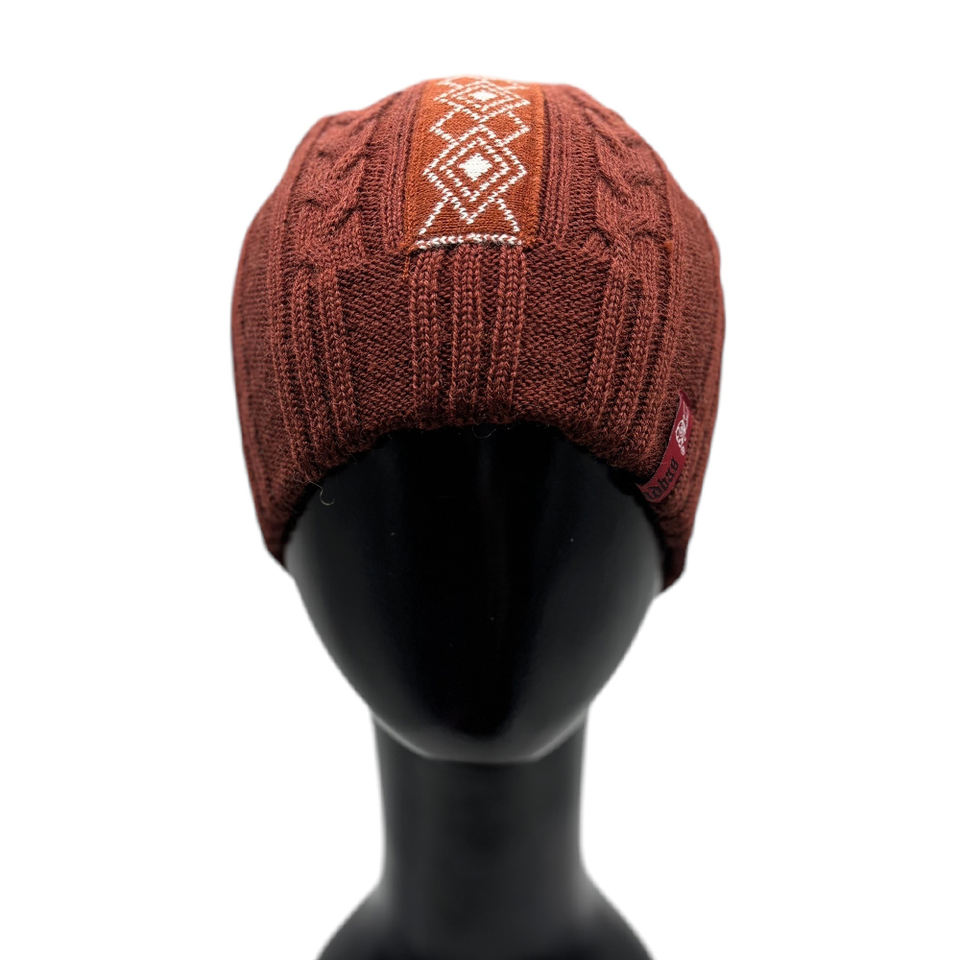 Bonnet d'hiver pour femme de la marque taïwanaise LANDBAS, 85% acrylique, 15% laine, étiquette tissée, tricot uni et motif torsadé