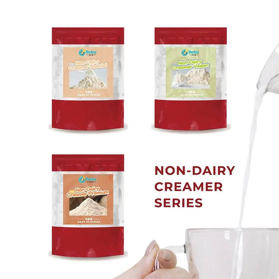 Crémier non laitier soyeux fabriqué à Taiwan dans un sac pour les ingrédients de l'espresso et du thé à bulles en déplacement