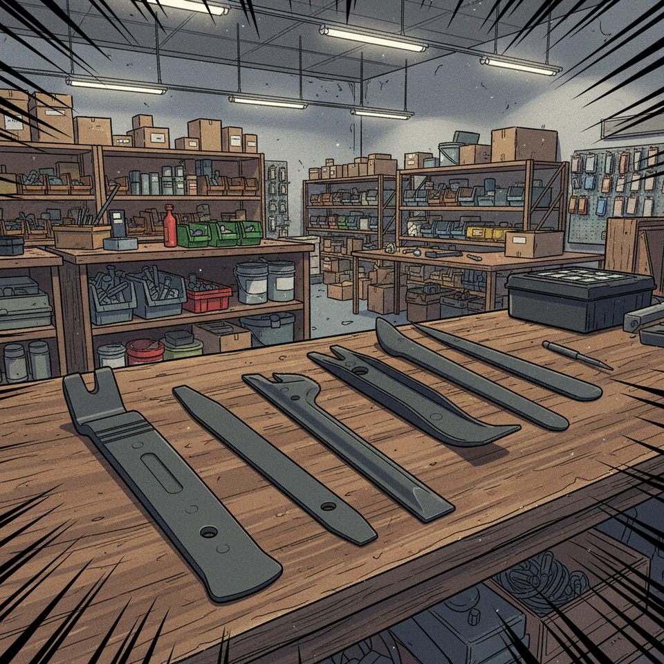Pointer, Spreader, Skid side, Straight panel remover, Angled clip panel remover, Viper's Tonguetype