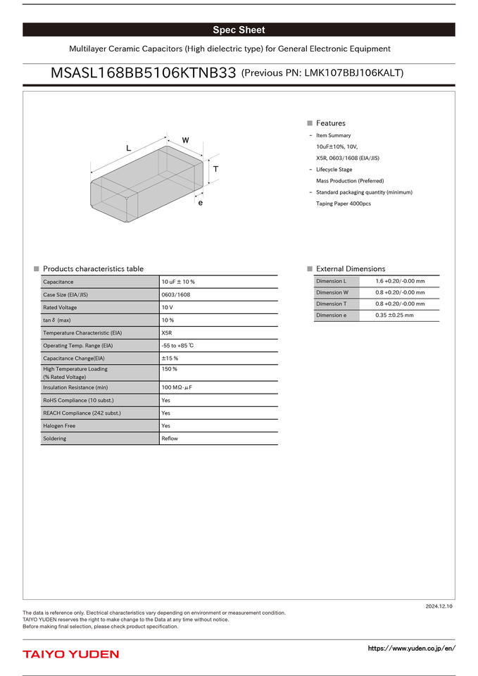 MSASL168BB5106KTNB33 LMK107BBJ106KALTModel Number