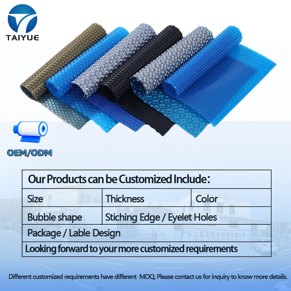 Taiyue Logo personnalisable couverture de piscine à bulles en polyéthylène maison bleu noir et argent pour piscine de parc aquatique