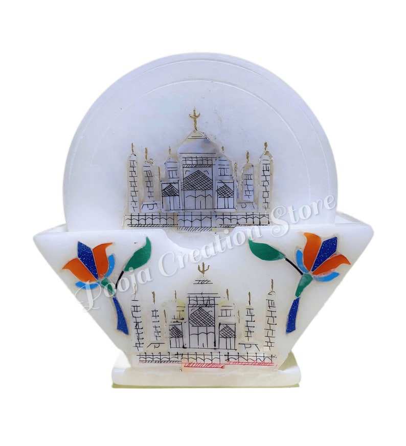 Ensemble de 3 sous-verres en marbre Taj Mahal, sous-verres en pierre incrustée faits à la main pour la salle à manger