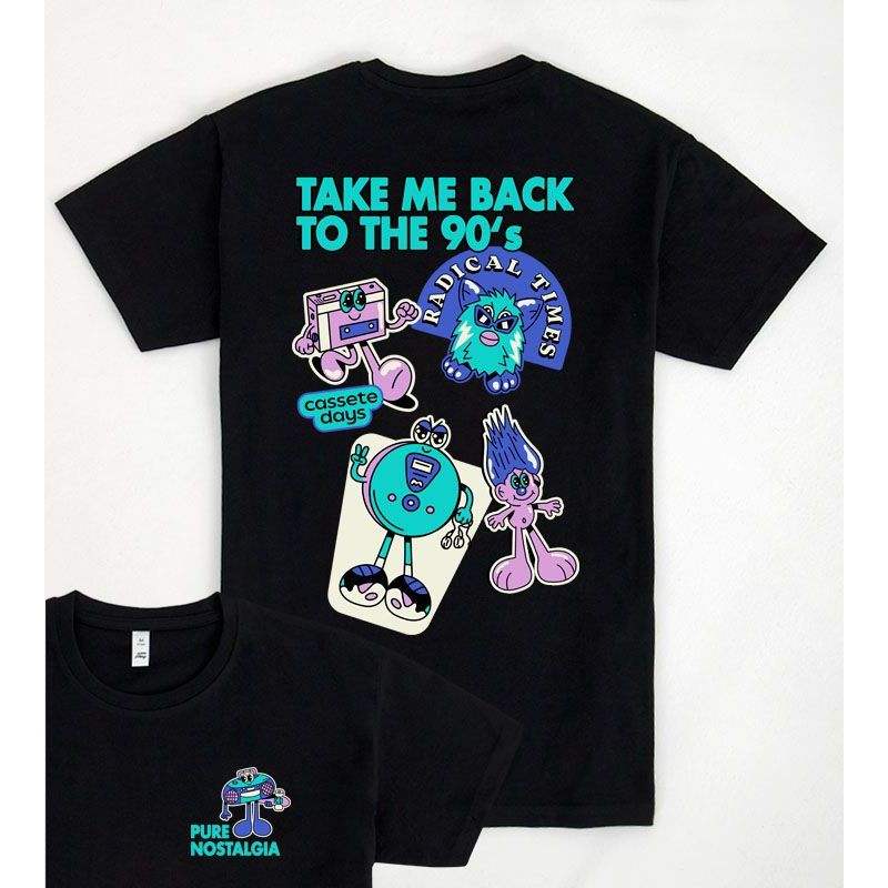 T-shirt rétro Take Me Back To The 90s, design nostalgique noir unisexe