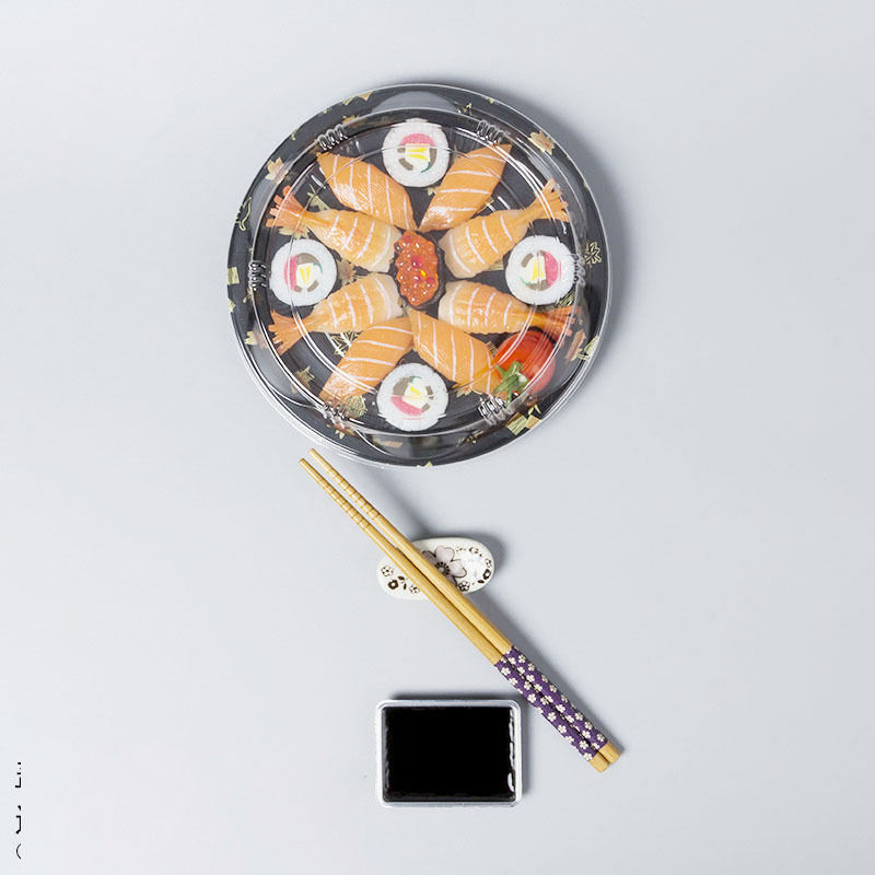 Takeaway Tray Container Party Sushi Trays with Lid Ps Fast Food Plastic Round Japanese Disposable Carton Customized Logo Blister