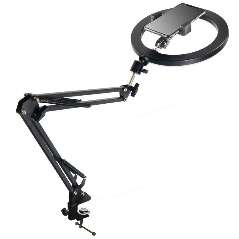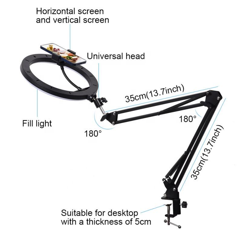 Takenoken Heavy-Duty Suspension Scissor Phone Stand LED Ring Light Microphones Flexible Boom Arm for Photo Studio Desk Usage