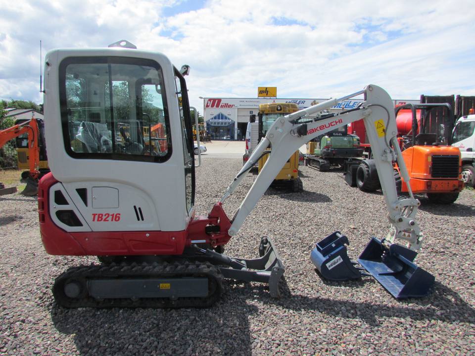 Mini pelle sur chenilles Takeuchi TB216 avec moteur Cylindre hydraulique Huade État d'occasion-Fixation du godet neuf