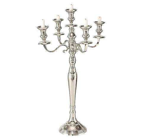 Grand chandelier en métal à 5 bras pour la décoration intérieure, qualité supérieure, porte-bougie élégant, unique, argenté, pour mariage, Noël, Pâques, table
