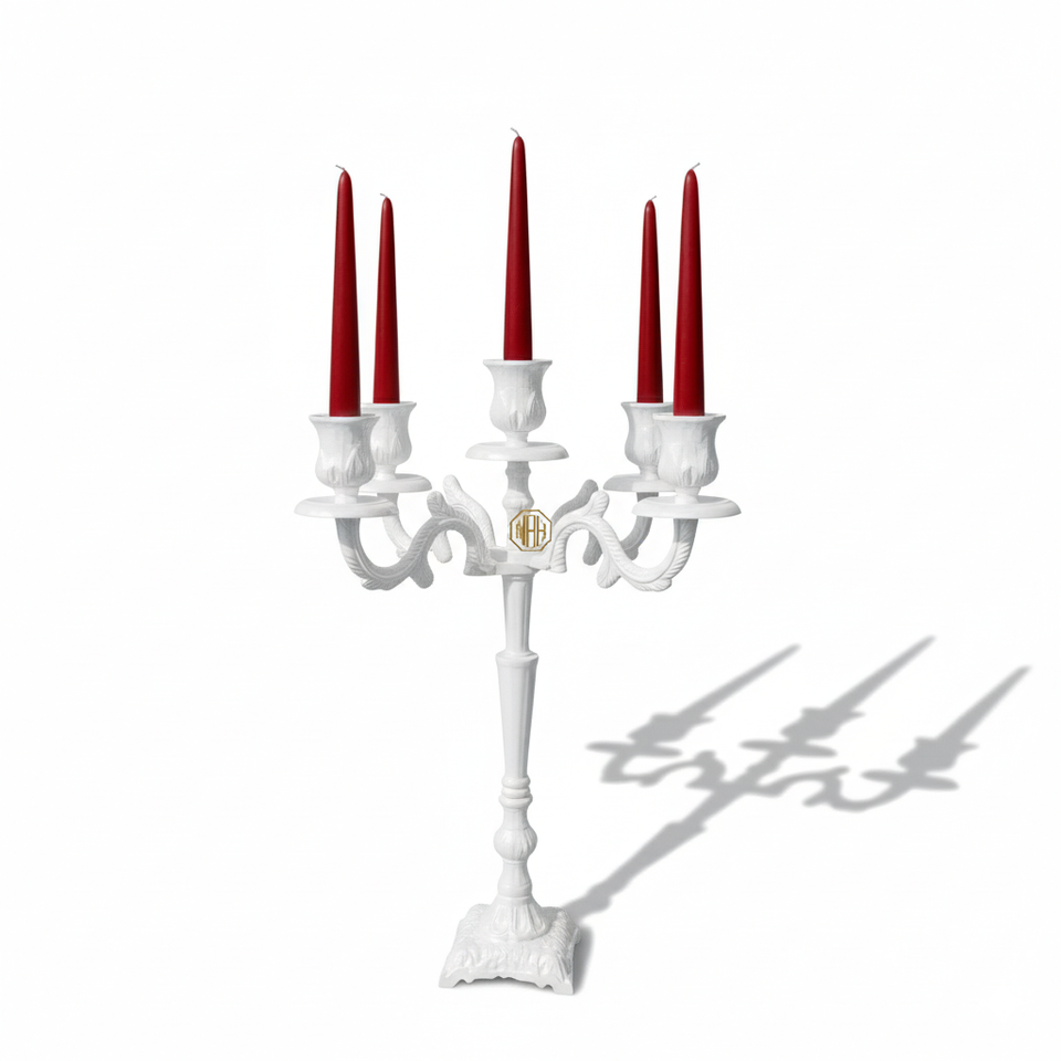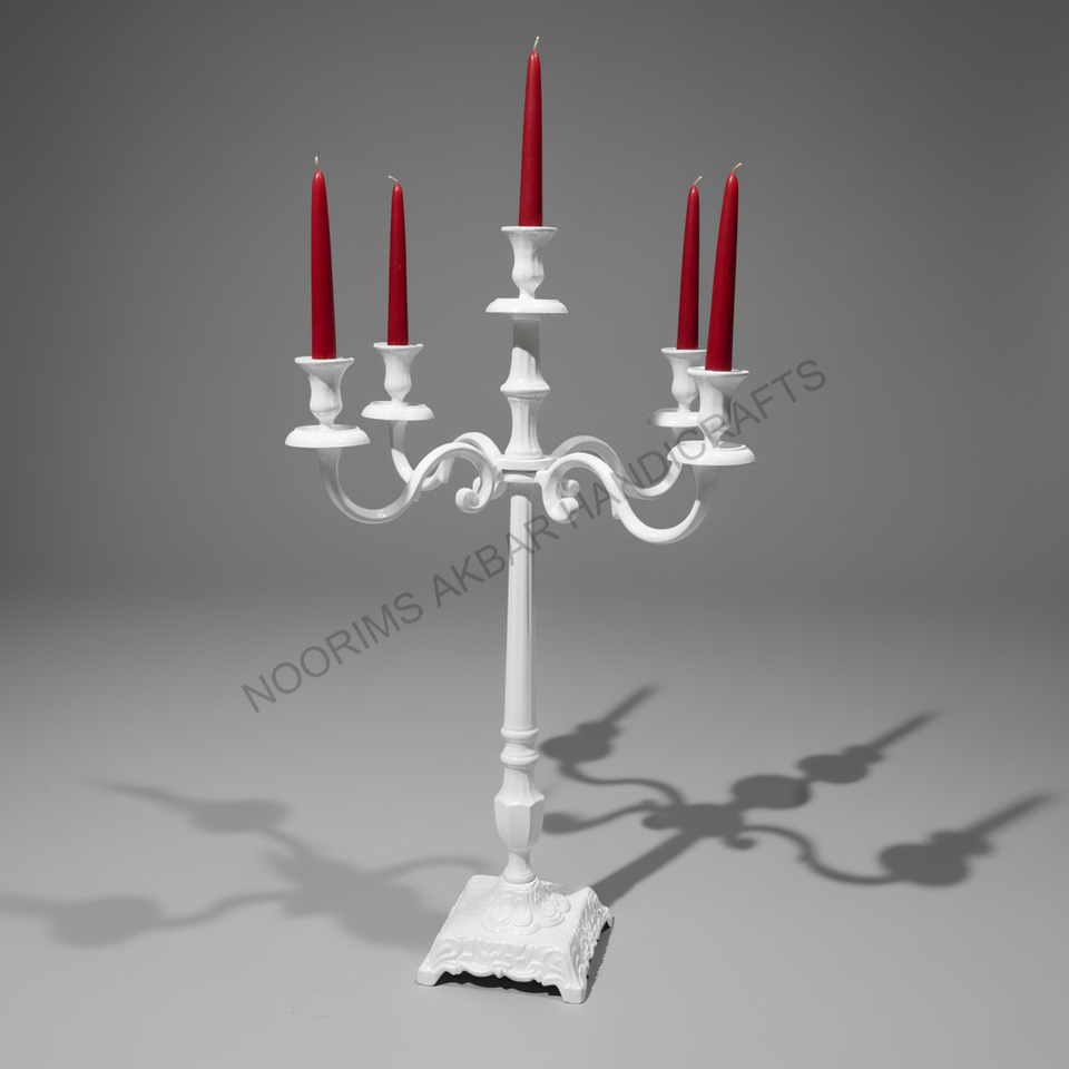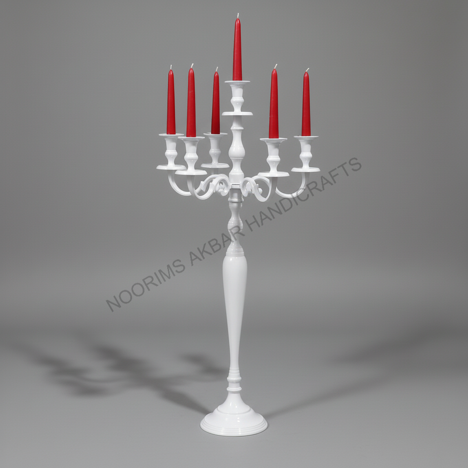 Tall Aluminum Candelabra for Wedding Centerpieces Adding Height and Grandeur to Elegant Event Table Arrangements White