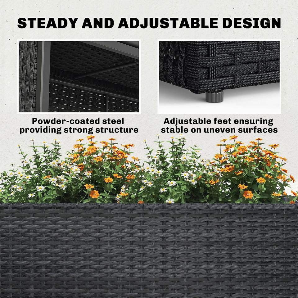 Grand pot rectangulaire en rotin PE noir avec trous pour doublure amovible, grand pot à fleurs pour plantes d'intérieur et d'extérieur