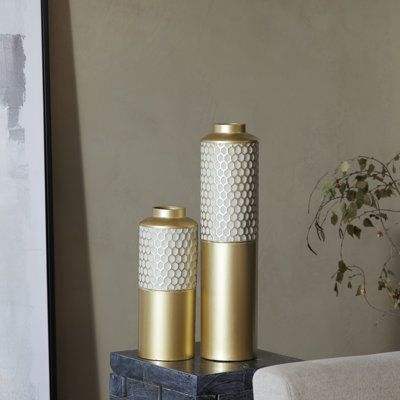Vase en métal de forme haute, créé pour l'accentuation de la décoration verticale dans les intérieurs, dans les maisons, les salles de séjour, avec une touche de hauteur