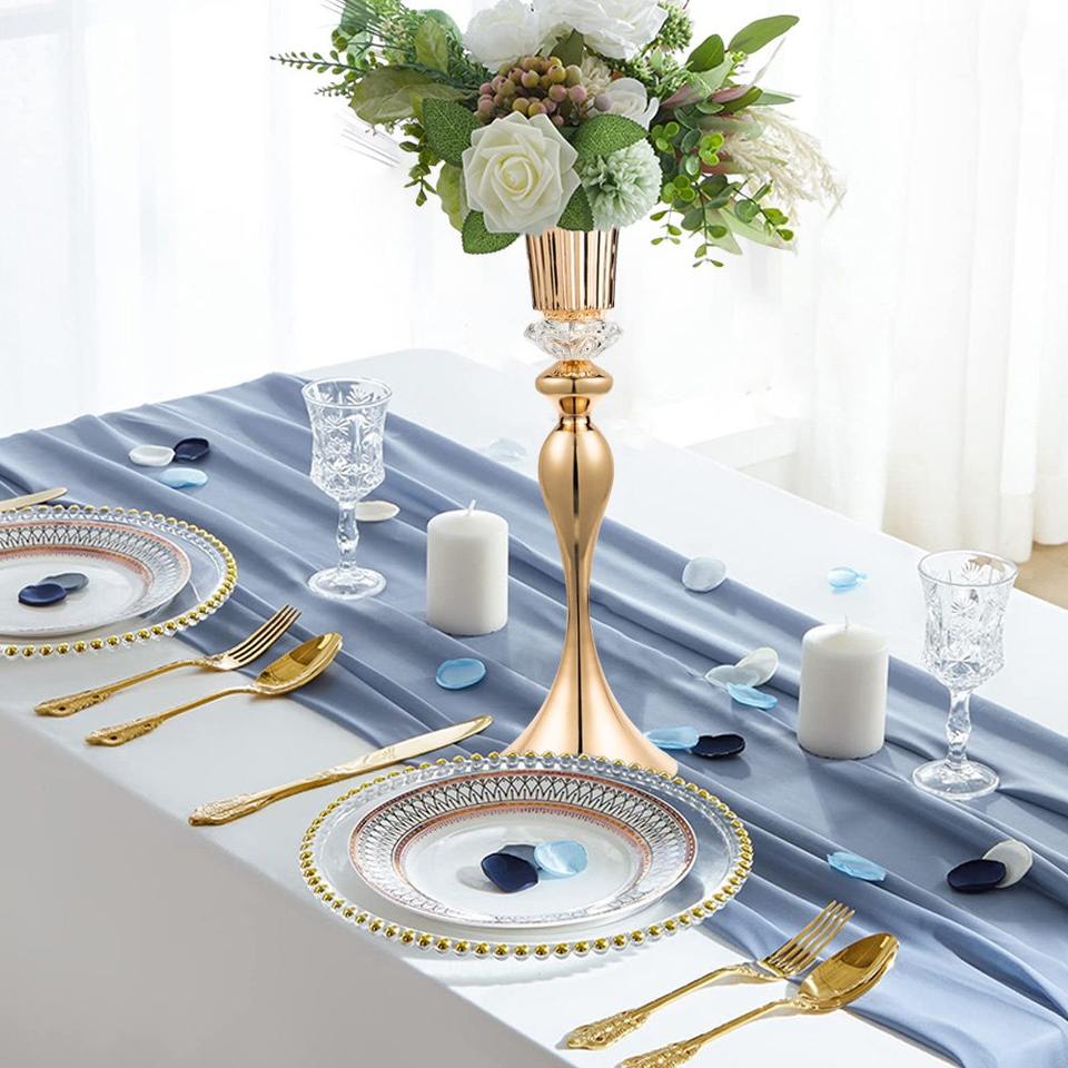 Grand vase de pièce maîtresse de mariage en or et cristal Vase trompette élégant en sablier avec accent de cristal à facettes