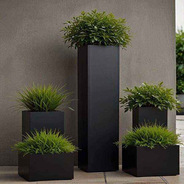 Jardinière rectangulaire haute en fibre de verre, noir classique, écologique, pot de fleurs décoratif pour plantes d'intérieur et d'extérieur, patio