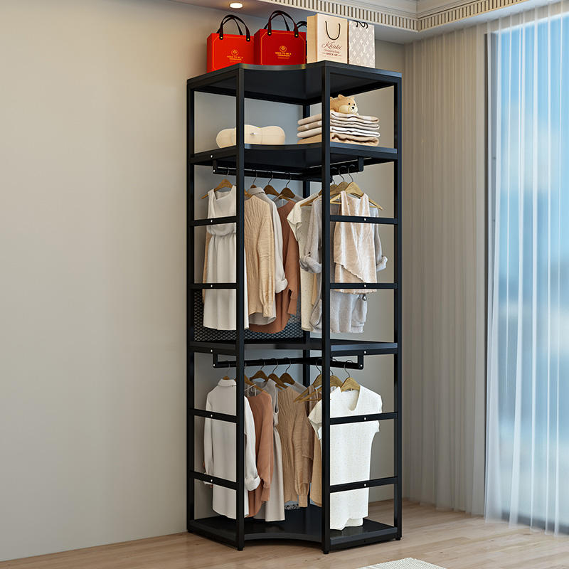 [Version haute] Porte-vêtements métallique, Étagère de rangement ouverte, Étagère à assembler, Étagère sur pied, Porte-manteau d'angle