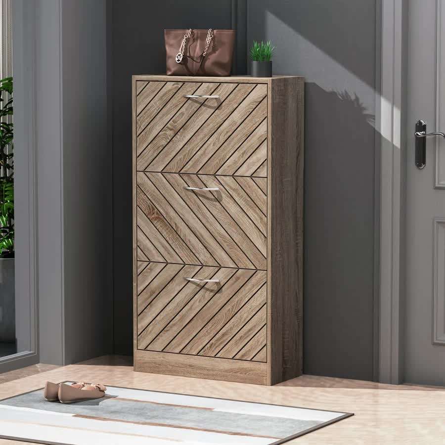 Grande armoire à chaussures en bois avec 3 compartiments pour villa ou centre commercial pour ranger jusqu'à 18 paires de chaussures