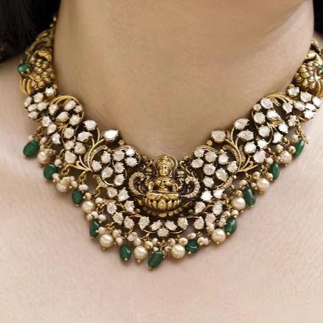 Ensemble de collier ras du cou et boucles d'oreilles en bijoux Kundan de mode indienne, fait à la main, en matériaux fins, inspiré de Sabyasachi, pour femmes