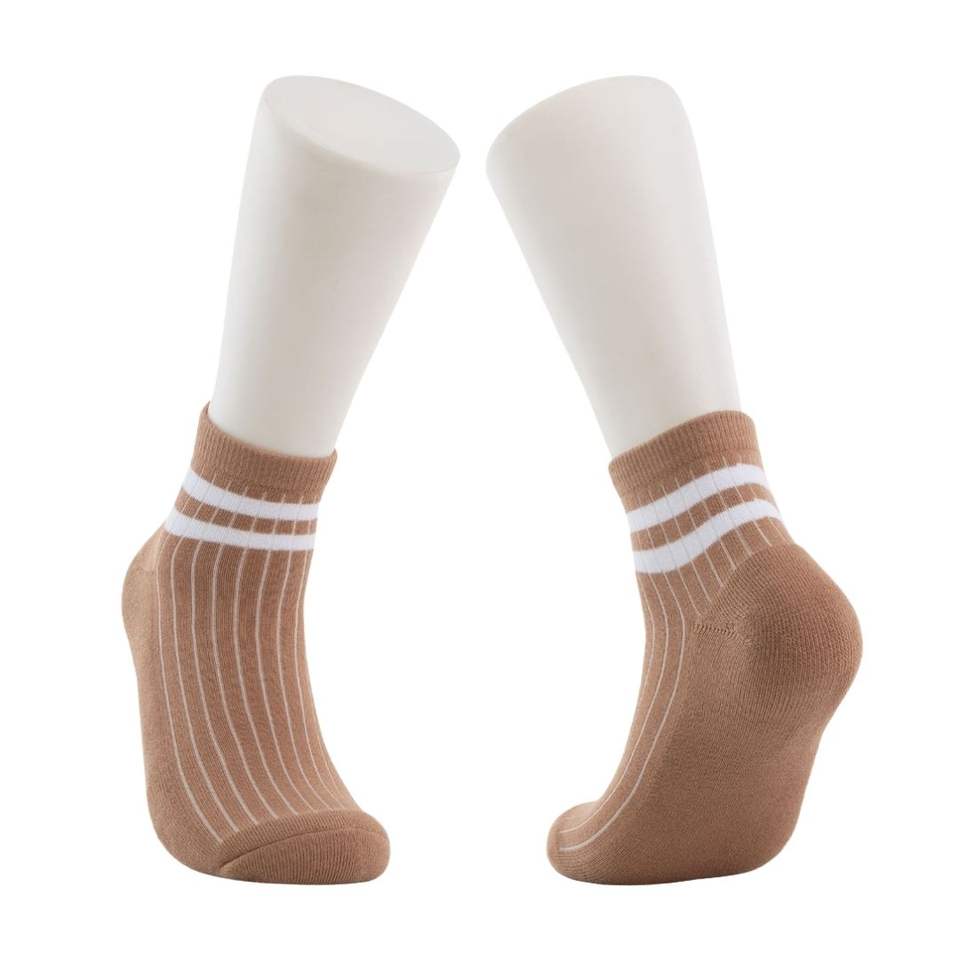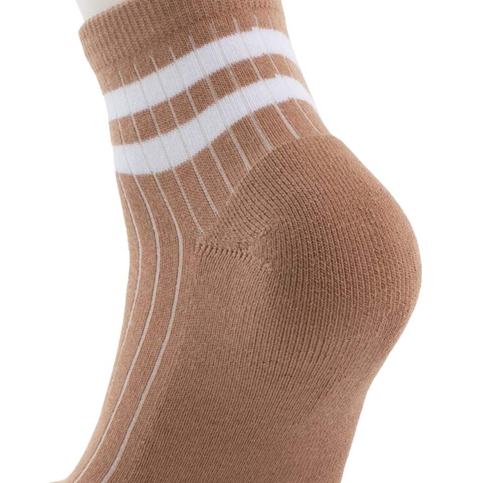 Paire de chaussettes côtelées marron clair avec détail rayé blanc, style rétro, décontractées, en coton biologique respirant