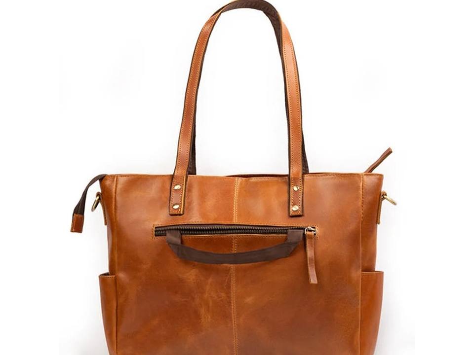 Sac fourre-tout de travail pour femme en cuir véritable Tan, motif bonbon tendance, deux fermetures éclair, grande capacité, pochette pour ordinateur portable 15 pouces, durable, pour tous les jours