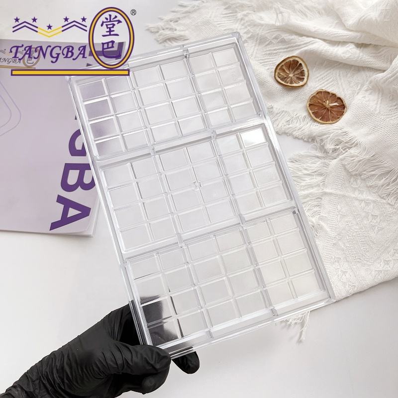 Tangba Plaque de moule à chocolat rectangulaire personnalisable Polycarbonate Outil de gâteau facile à utiliser avec conception de bloc de grille pour la fabrication de chocolat