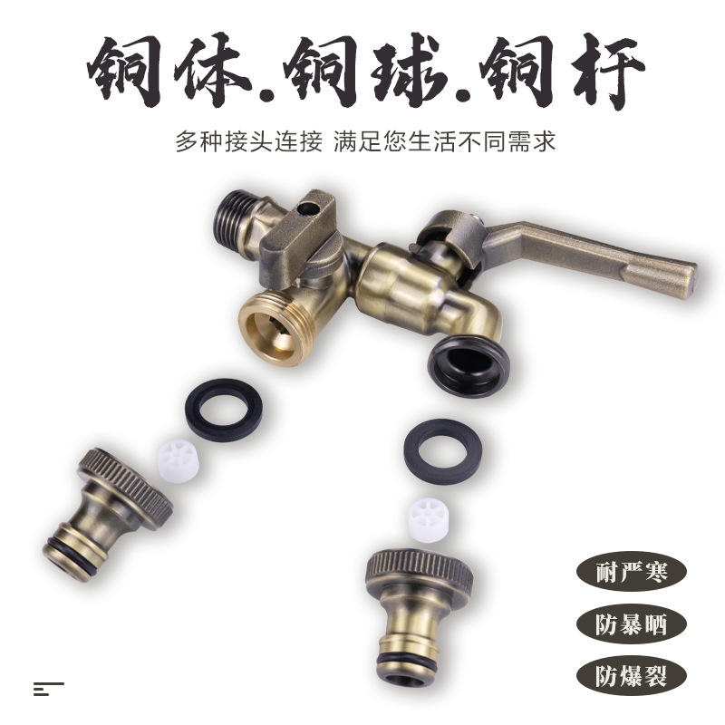 Robinet de jardin Tangke rétro tout en cuivre, robinet d'eau antigel à 4 points avec double sortie pour machines à laver, exclusivité transfrontalière