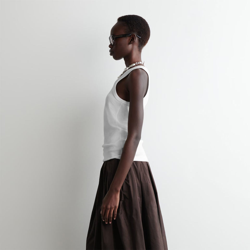 Débardeur pour dames couleur blanche sans manches O cou entraînement mince ajusté longueur régulière Gym Fitness dame côtelé débardeurs