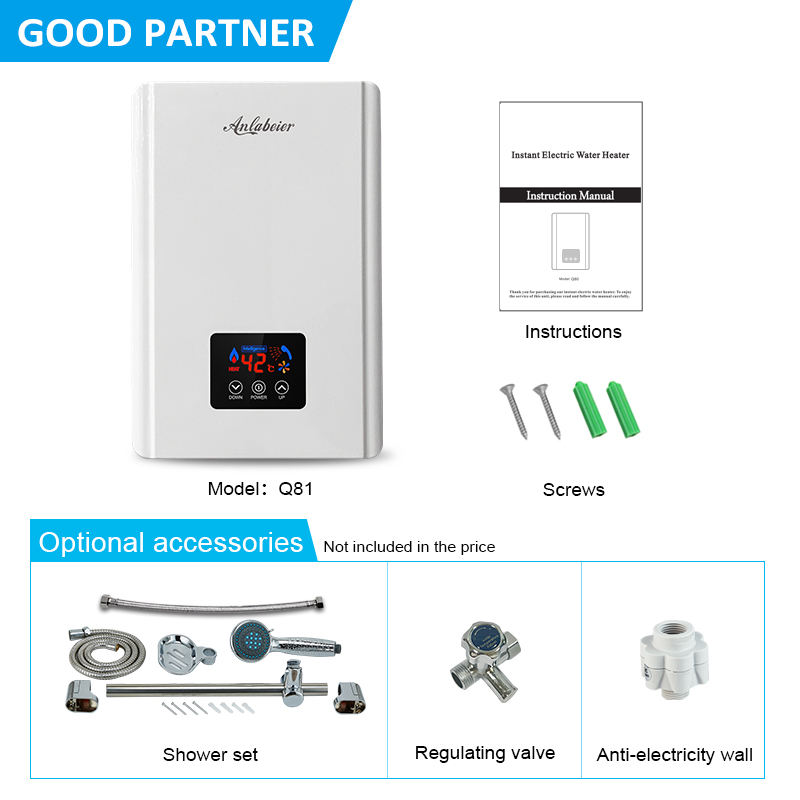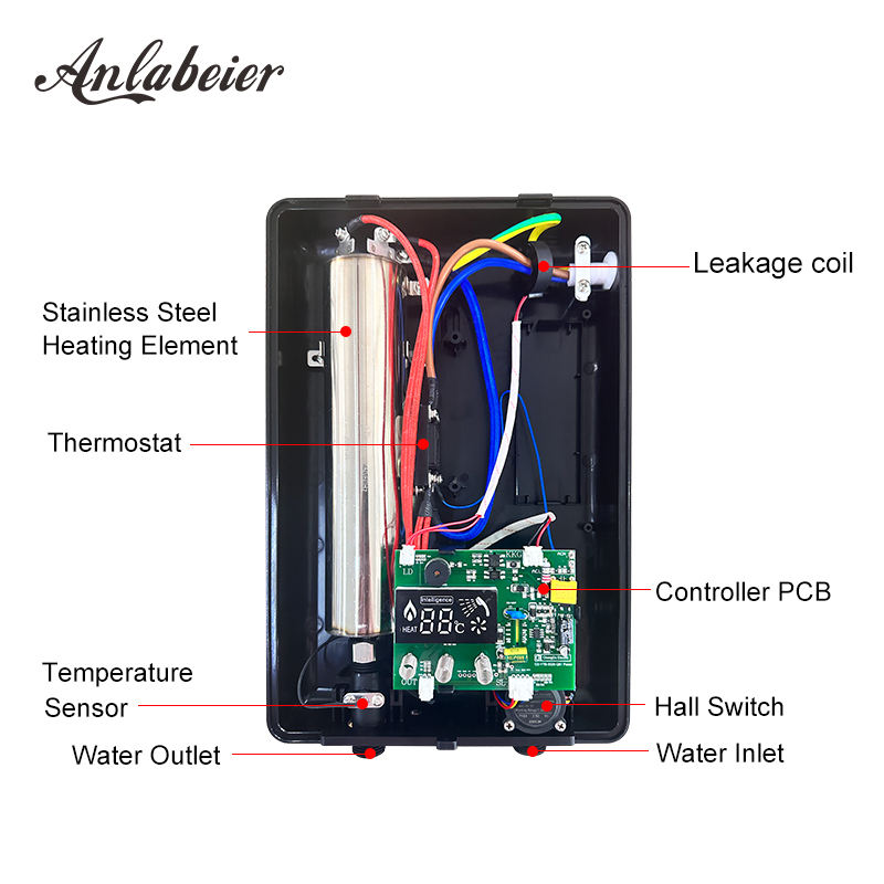 Chauffe-eau électrique sans réservoir, commande tactile, étanche IPX4, affichage LED, élément chauffant en acier inoxydable pour salle de bain et usage domestique