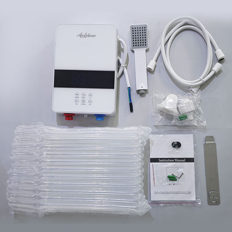 Chauffe-eau sans réservoir électrique avec commande tactile, écran LED, fonction ELCB, 6000W, étanche IPx4 pour salle de bain.