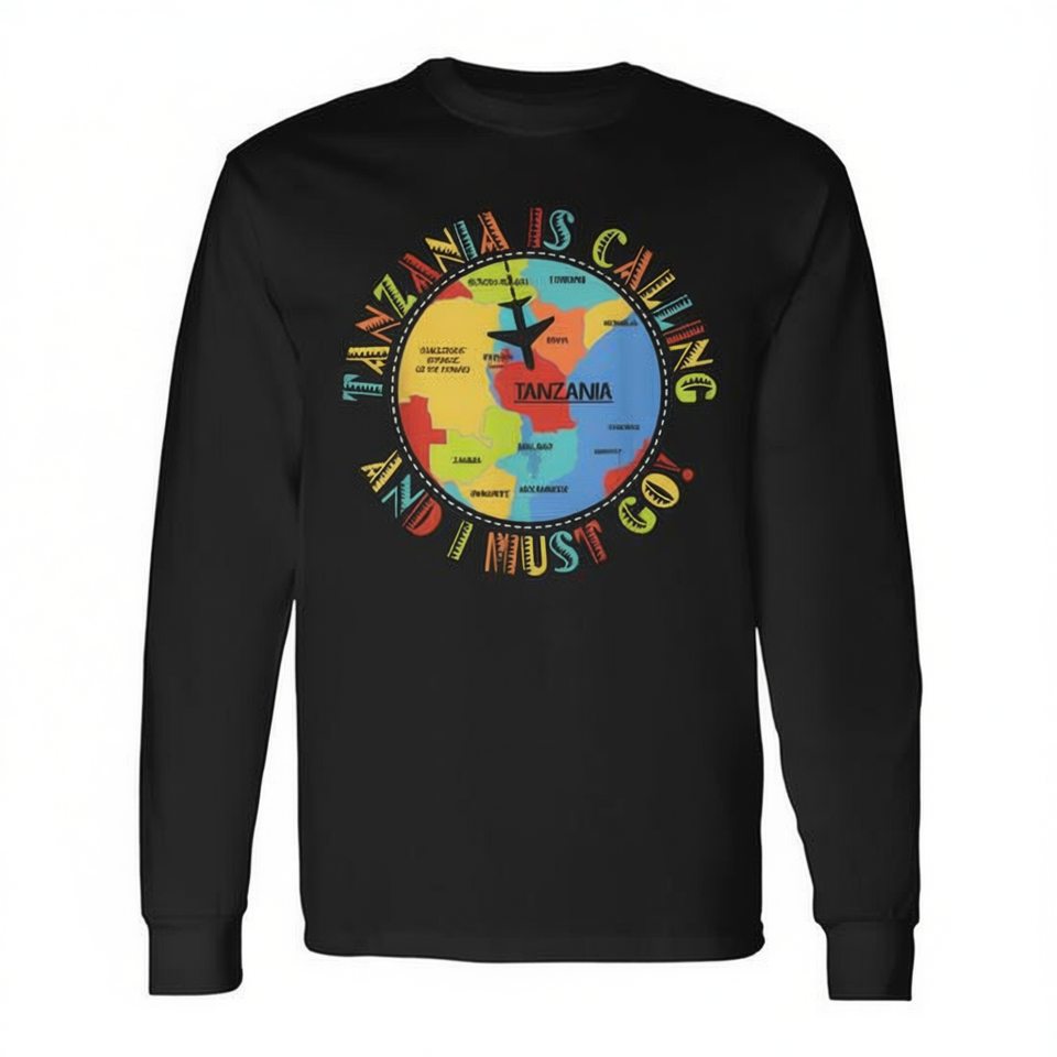 La Tanzanie m'appelle et je dois y aller, t-shirt à manches longues avec design de carte de l'Afrique de l'Est