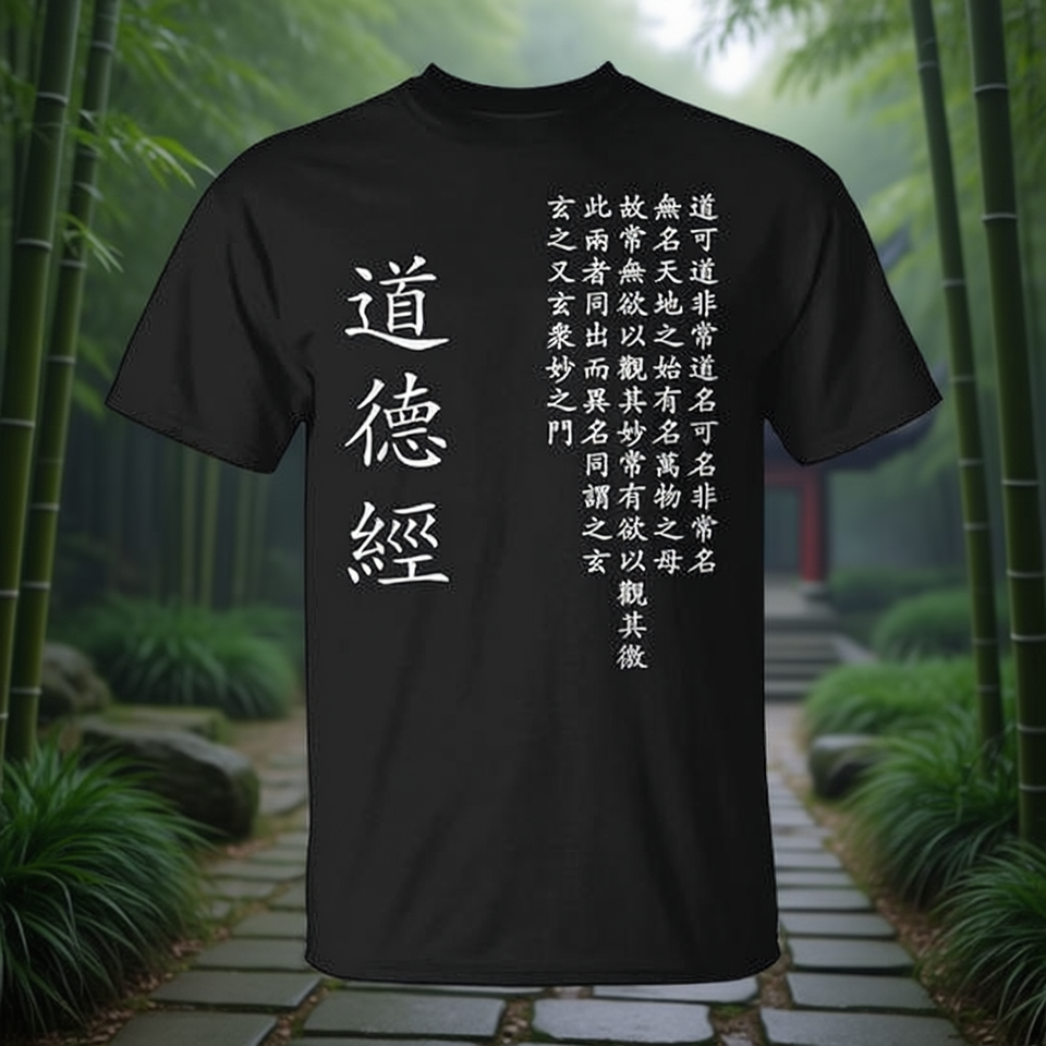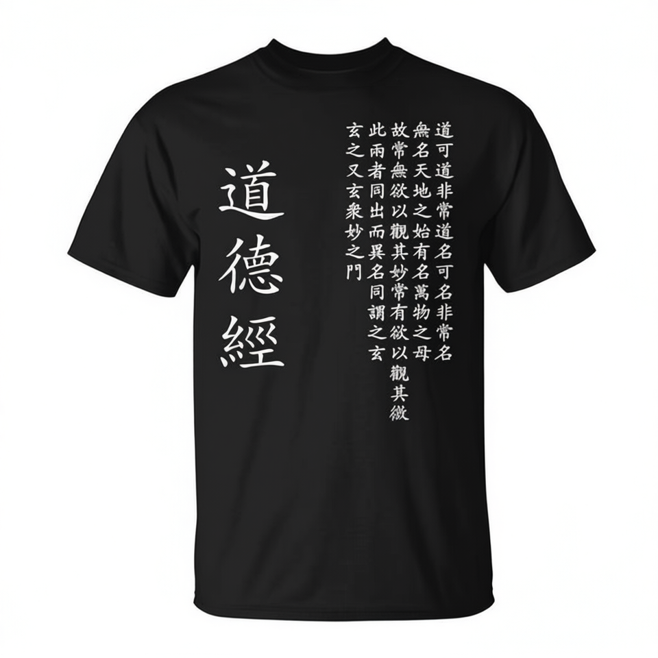 T-shirt de calligraphie chinoise Tao Te Ching, noir, coupe classique pour hommes