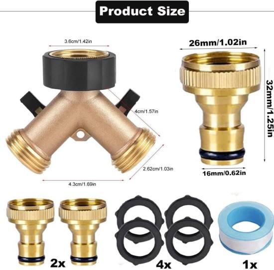 Robinet Y Splitter Collecteur en laiton Connecteur de tuyau de machine à laver à deux voies 3/4"