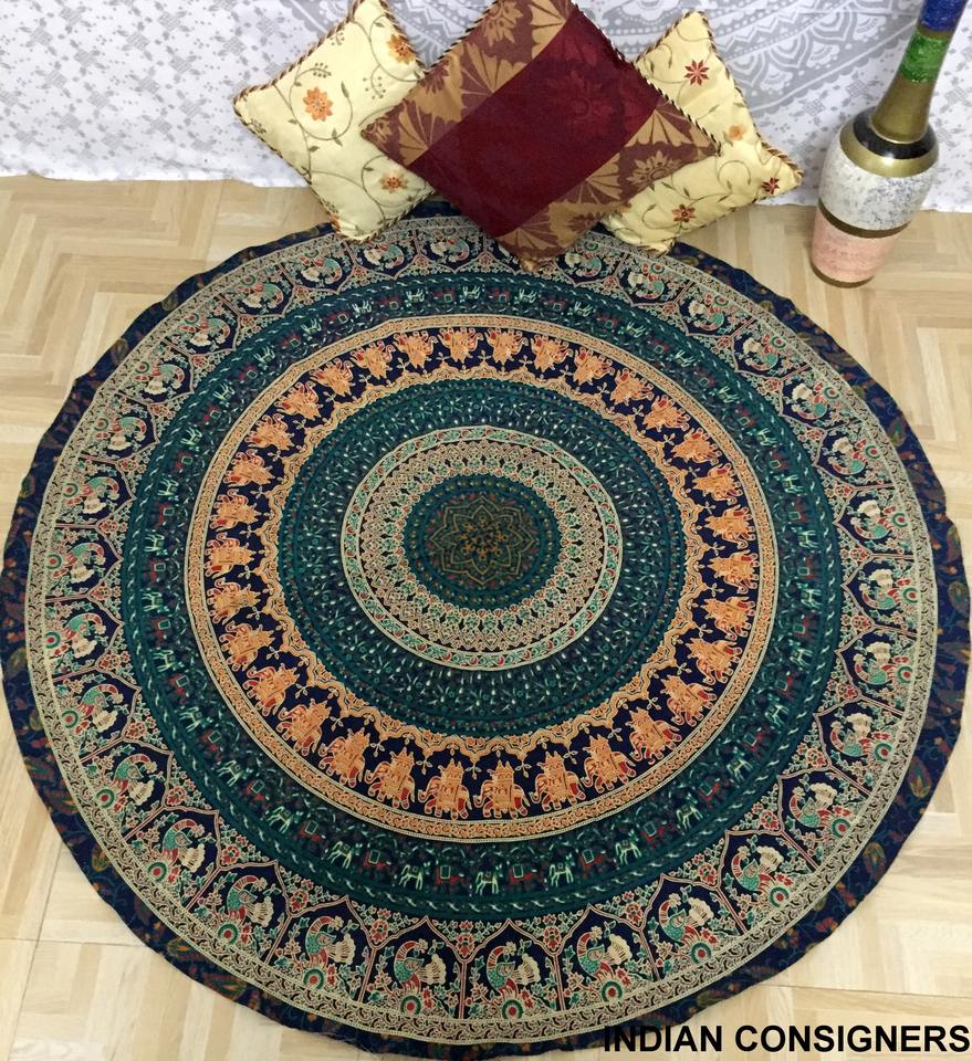 Product name:72" Indian Animal Mandala Green Throw Tapestry