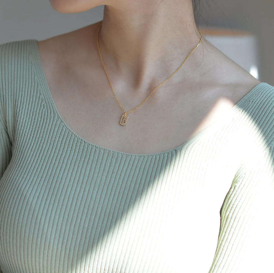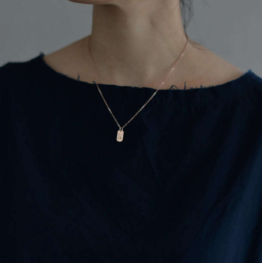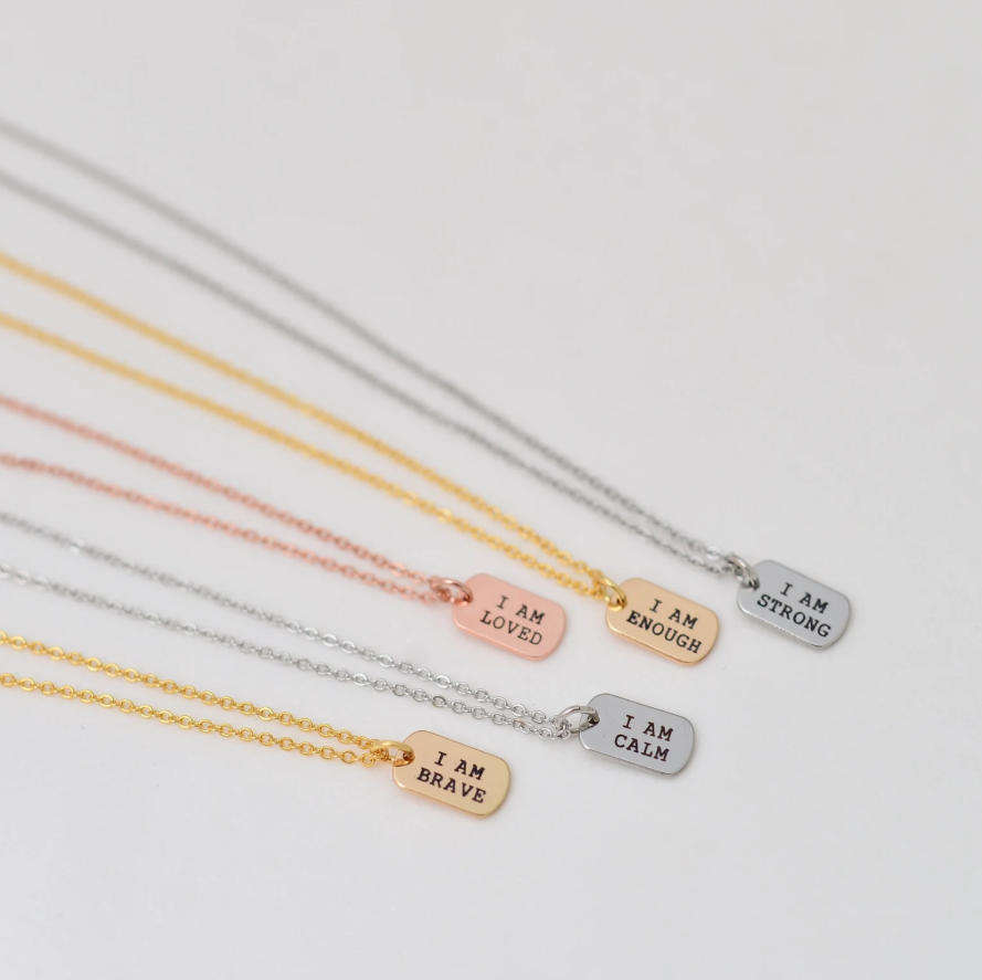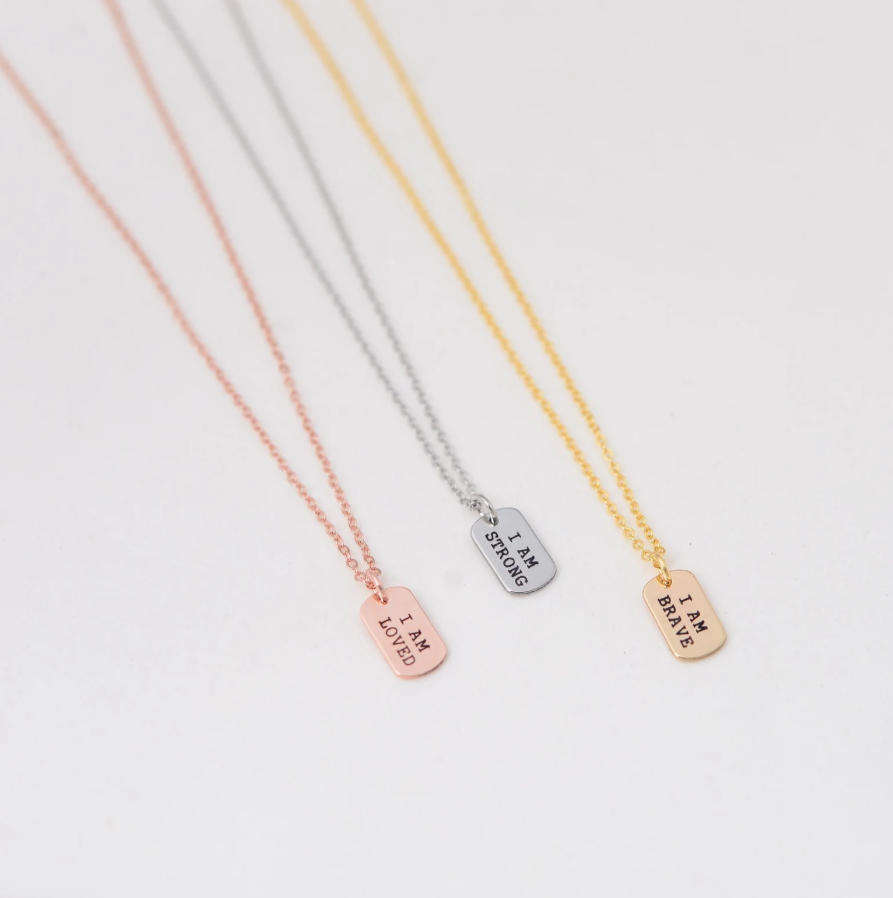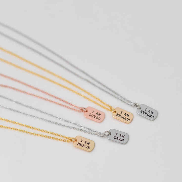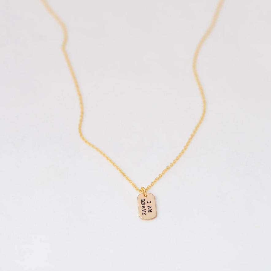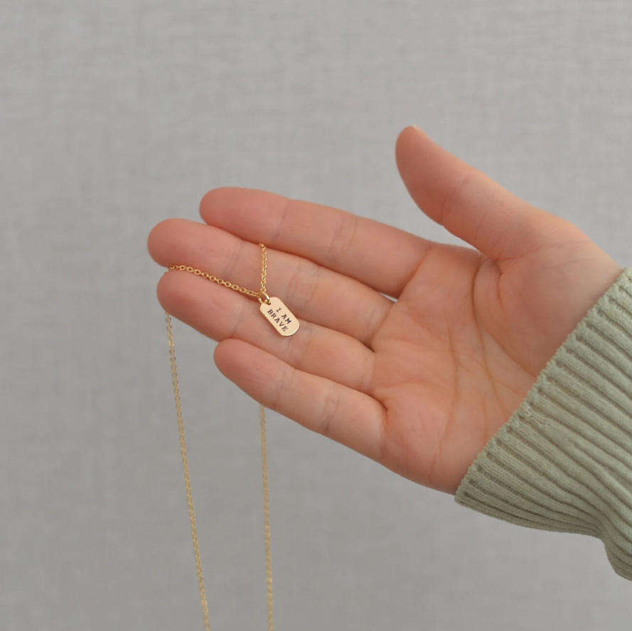 Tarnish Free I AM Brave Enough Strong Loved Inspirational Quote Necklace Custom Engraved Dog Tags Self Love Necklace Gold