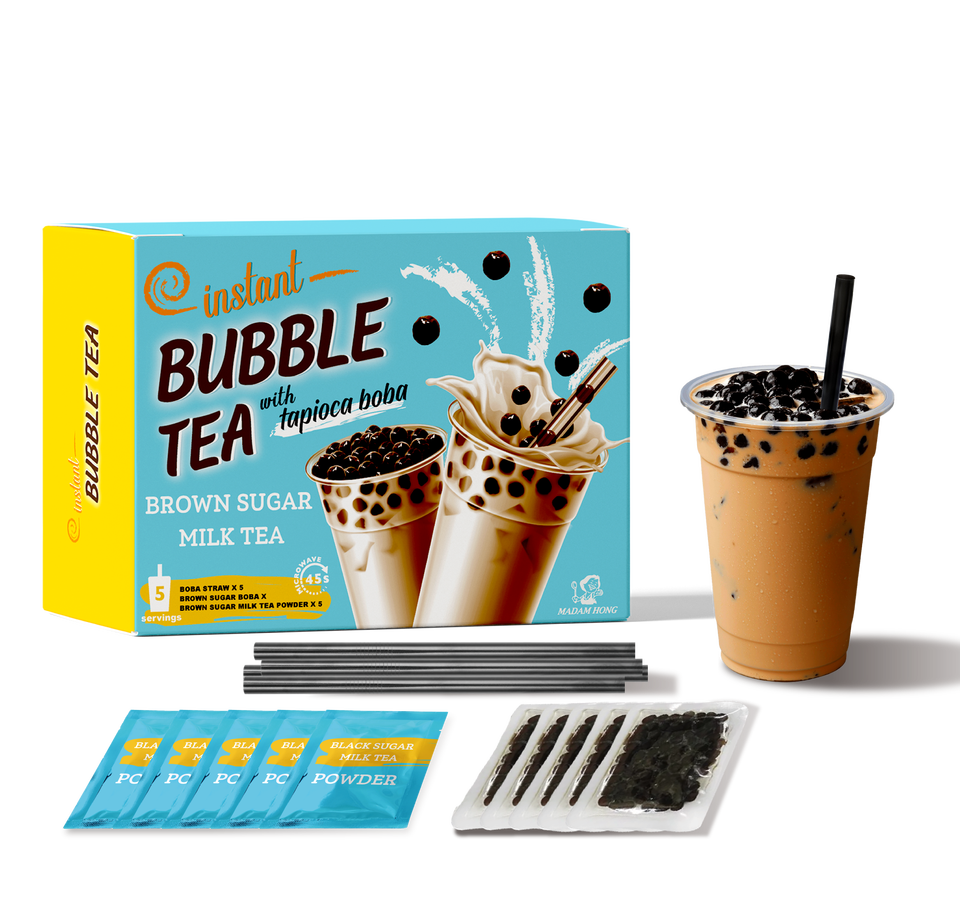 Contenu :boba pack *5, milk tea powder pack *5 and straw *5