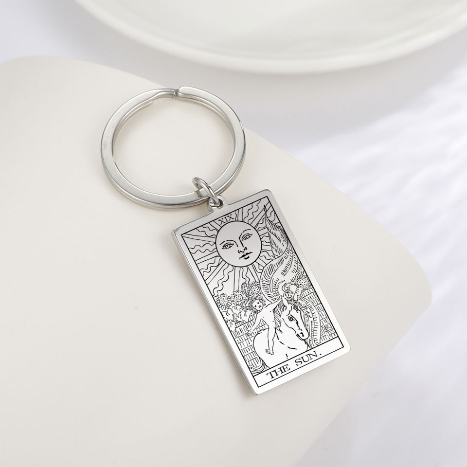 Tarot cartes porte-clés les arcanes majeurs porte-clés collier esthétique bonne chance amulette en acier inoxydable bijoux cadeau