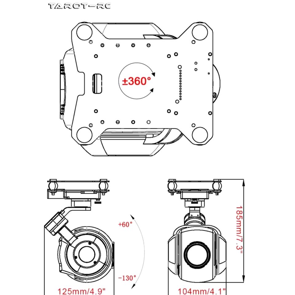 Caméra Gimbal Tarot T26X-NET 2MP avec Zoom Optique, Sortie Réseau et Commande Un Bouton Orientée Vers le Bas pour Jouets Électroniques et Systèmes Radio FXB