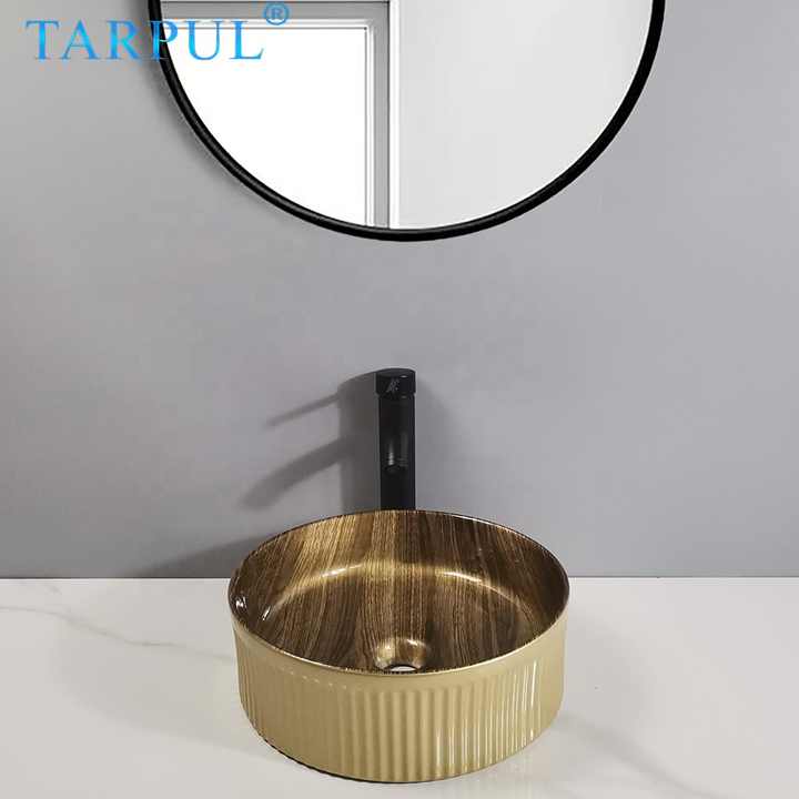 Tarpul Style Européen De Mode Or Circulaire Grain De Bois Lavabo Comptoir Designer Lavabo De Luxe Salle De Bains Évier Art Évier