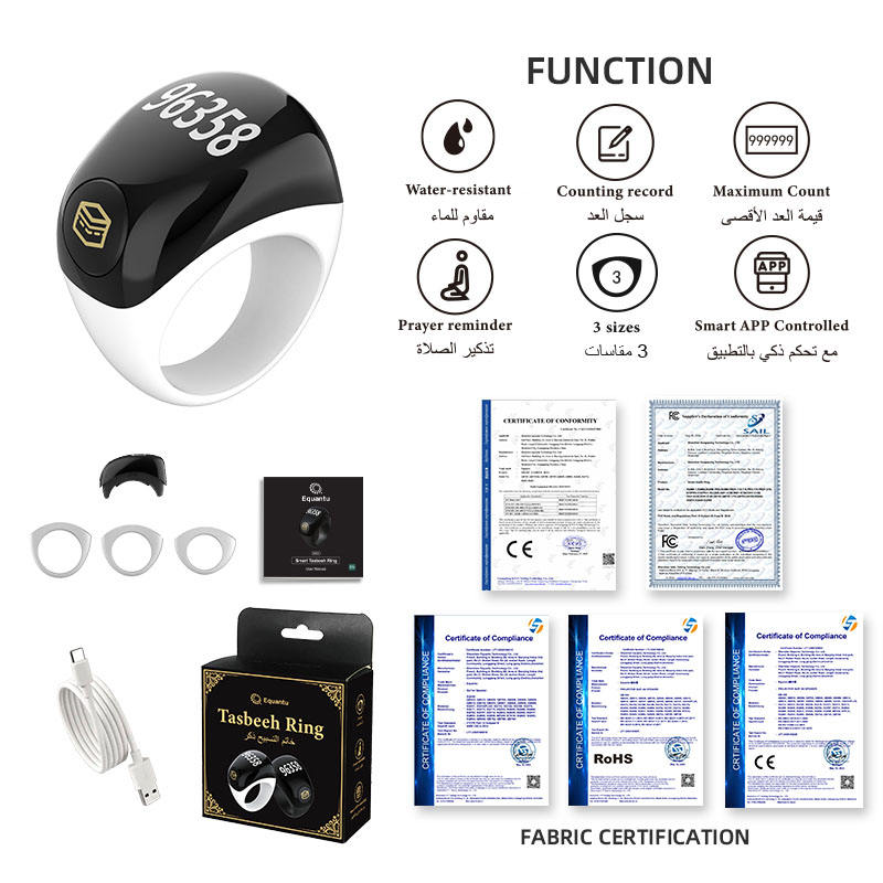 Bague de comptage Tasbeeh Equantu QB809, trois tailles, avec rappel des cinq heures de prière, cadeau musulman, Eid Ramadan, bague de Zikr
