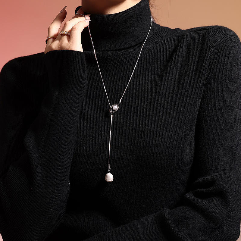 Chaîne de pull longue ajustable avec pampille et fausses perles, accessoires de bijoux de luxe légers en acier inoxydable pour femmes