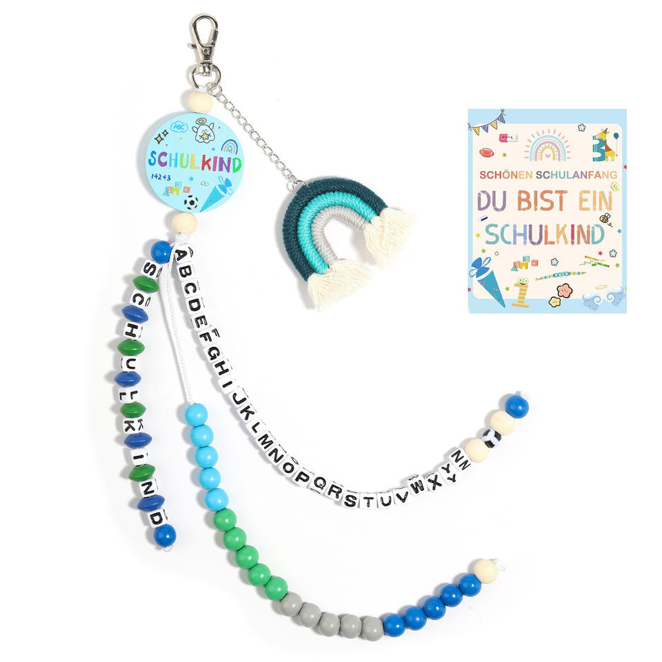 Porte-clés arc-en-ciel à glands, panneau en bois en forme de coeur, perles acryliques colorées, porte-clés cadeau, porte-clés lettre en forme de coeur