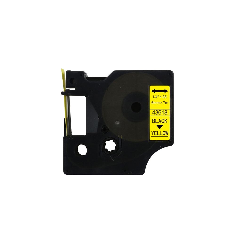 Tatrix 6mm Noir pour cartouche DYMO LabelManager 43618 compatible jaune pour imprimantes d'étiquettes