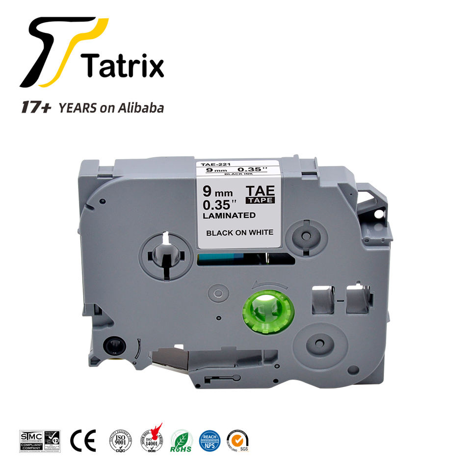 Tatrix TZ221 TZe221 TZ-221 TZe-221 9mm Black on White Compatible Laminated Label Tape Cartridge for Brother P Touch PT-1010