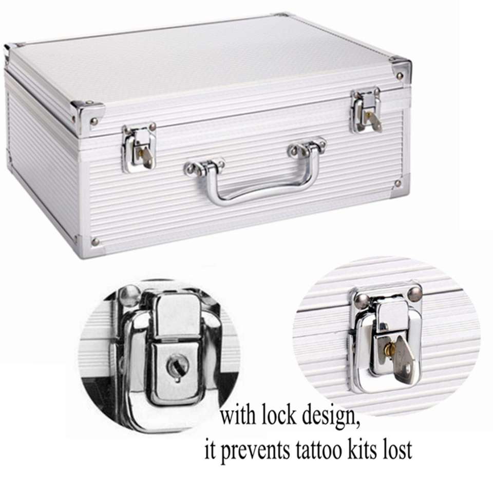 Boîte de rangement pour kit de tatouage, organiseur de tatouage 12,6" x 9,5" x 5,1" avec serrure, étui de transport pour machine à tatouer