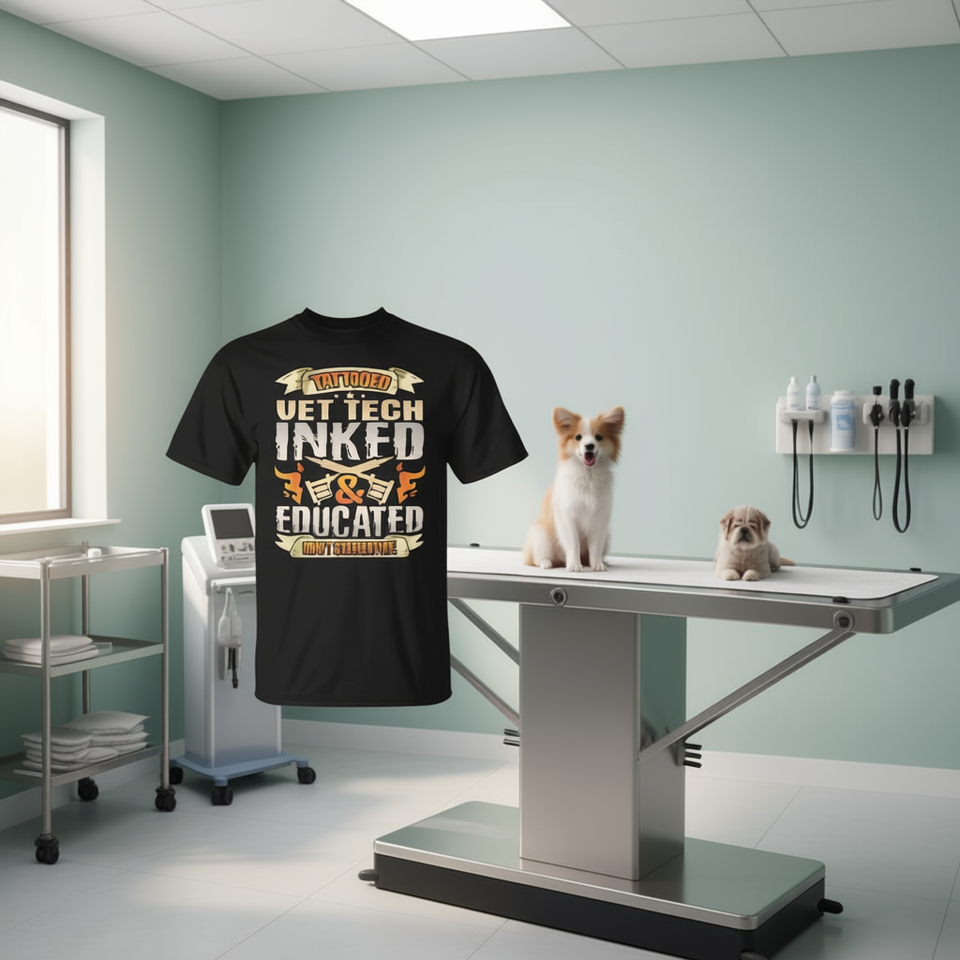 T-shirt « Tattooed Vet Tech Inked And Educated » pour les professionnels de la médecine vétérinaire