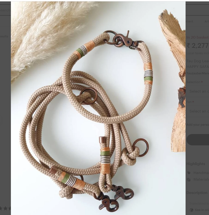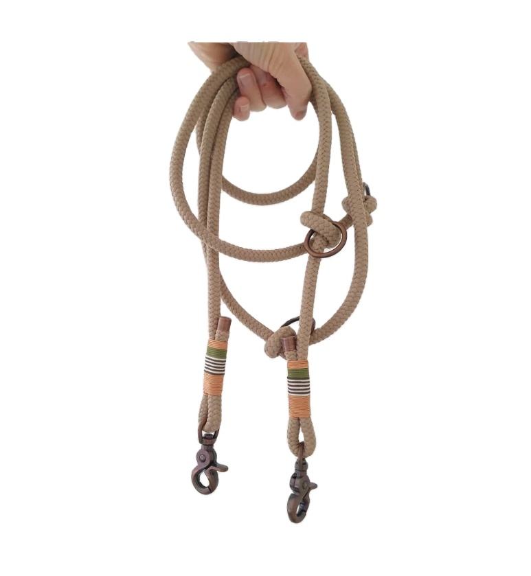 Ensemble laisse et collier pour chien en corde de coton Tau, crème et marron, personnalisé, fait main, tressé, durable