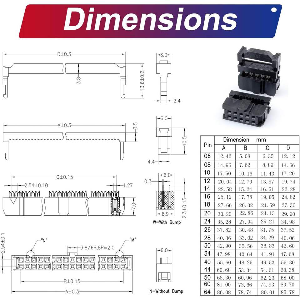 Câble plat Tcenofoxy 10P femelle à femelle, connecteur IDC 50cm FFC FPC pour câblage électronique, 3 pièces